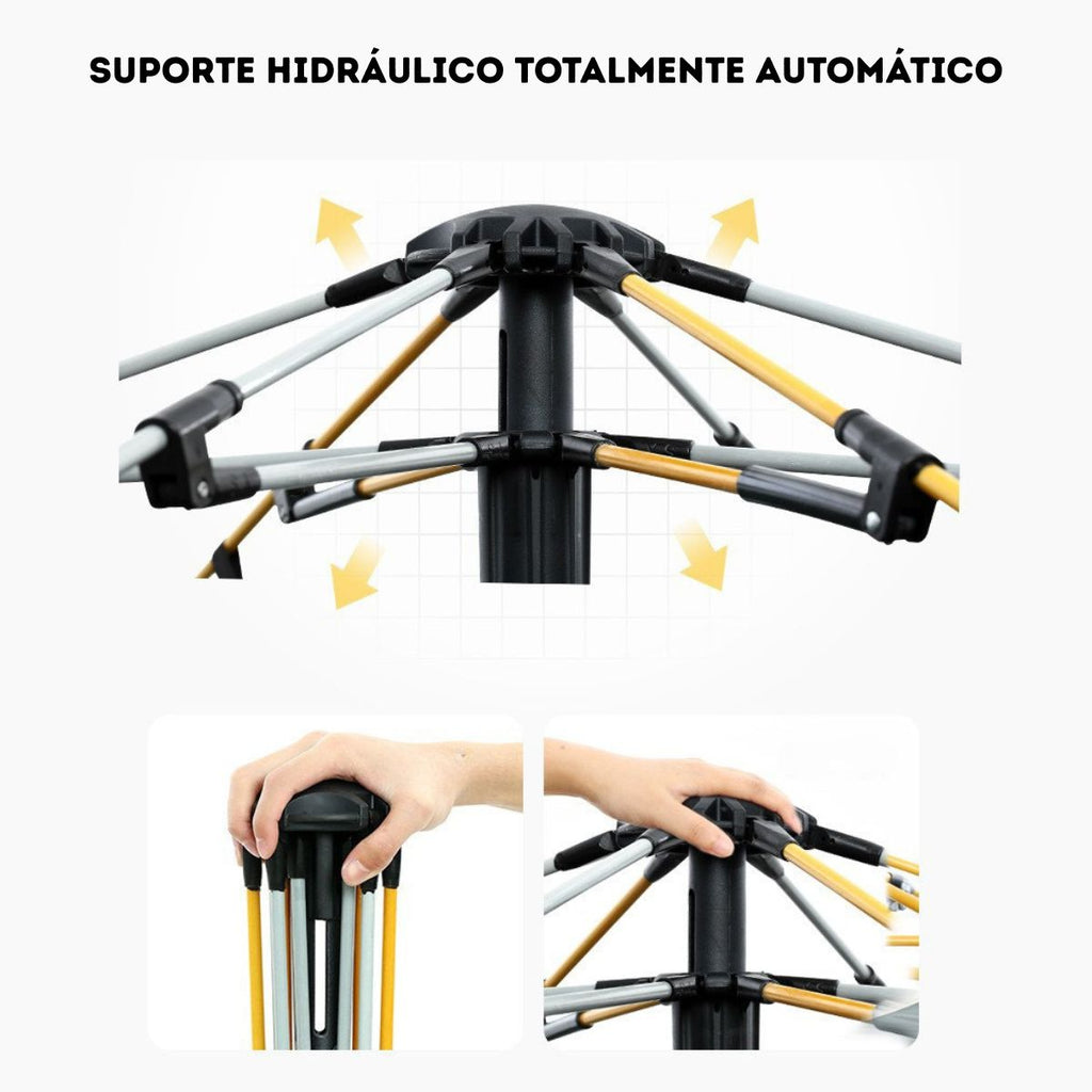 Com sistema automático de montagem rápida, em menos de 1 minuto sua tenda está pronta. Conta com duas portas e janelas com tela, que deixam o ambiente arejado e livre de insetos.
