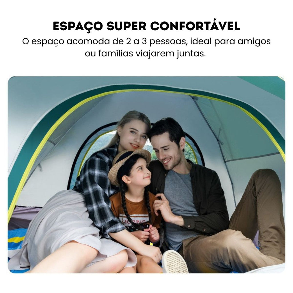 Compacta para transportar e espaçosa para até 3 pessoas, é ideal para camping, trilha, praia, pesca ou até para relaxar no quintal.