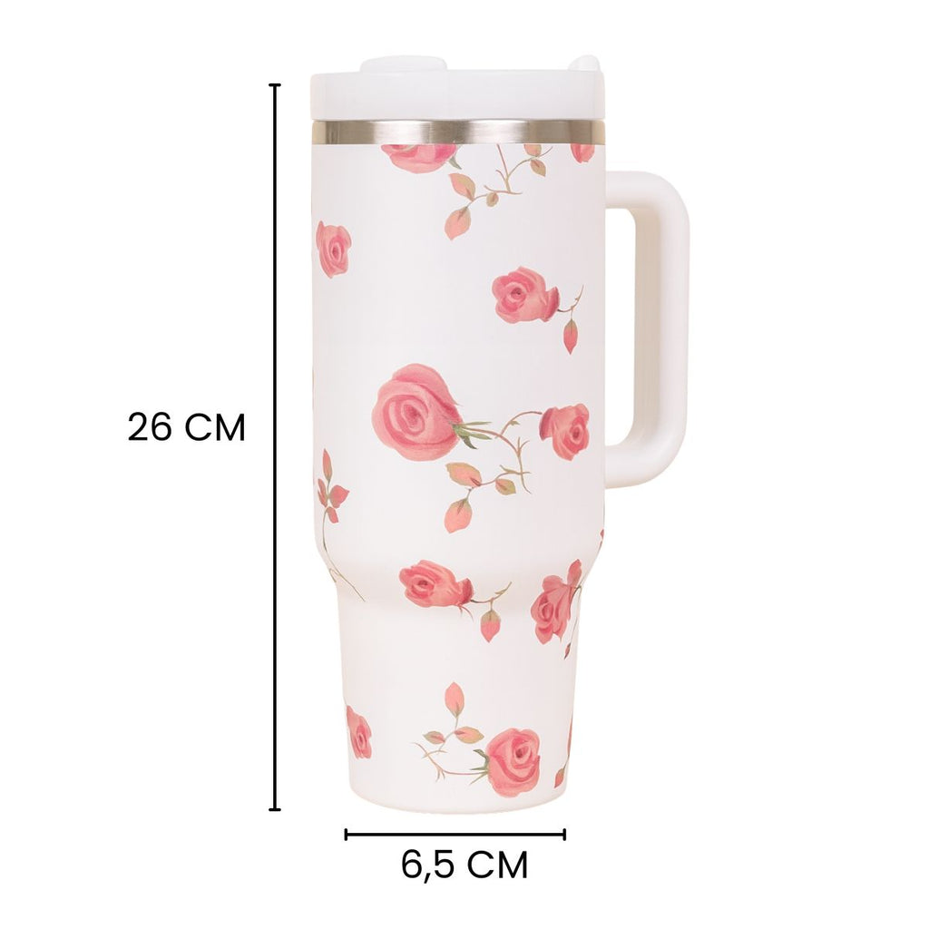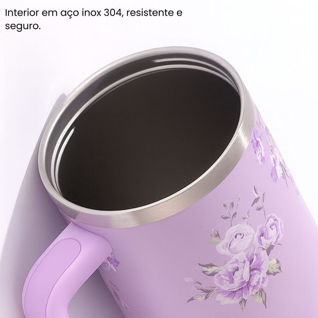 Com design delicado e estampas florais encantadoras, o Copo Térmico com Alça Florido mantém suas bebidas na temperatura ideal por muito mais tempo, seja quente ou gelada.