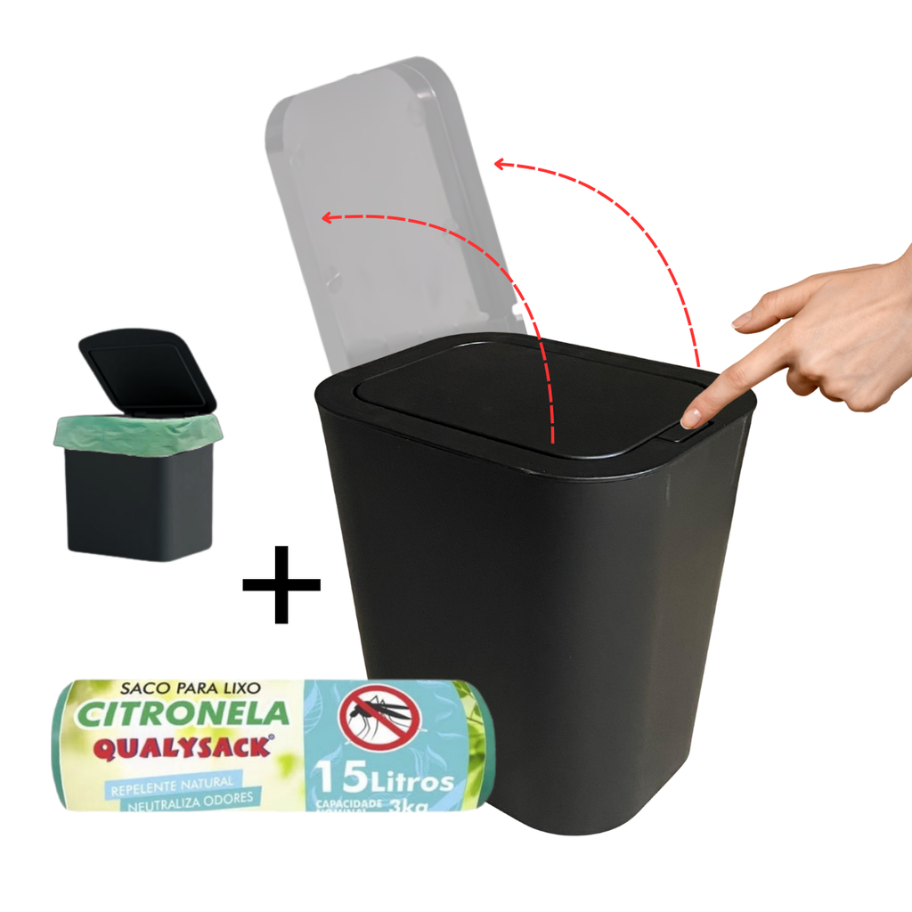 Com abertura por clique, essa lixeira de 12 litros é prática, discreta e ideal para o dia a dia. Basta um toque e a tampa se abre automaticamente, sem esforço.