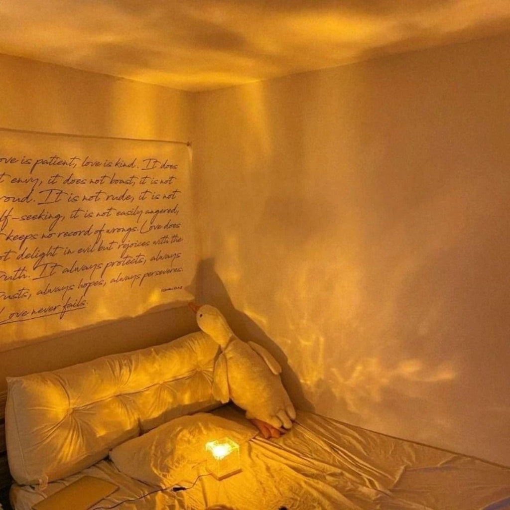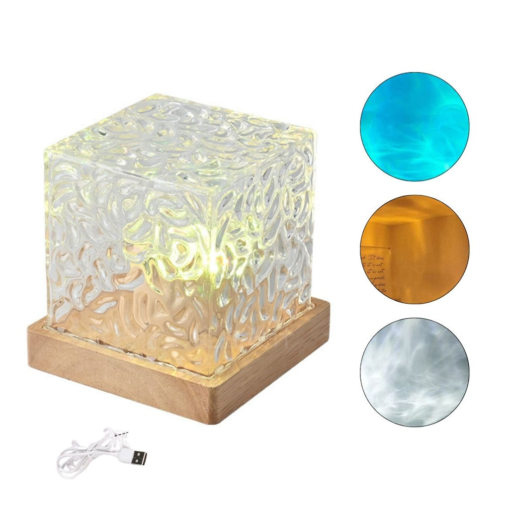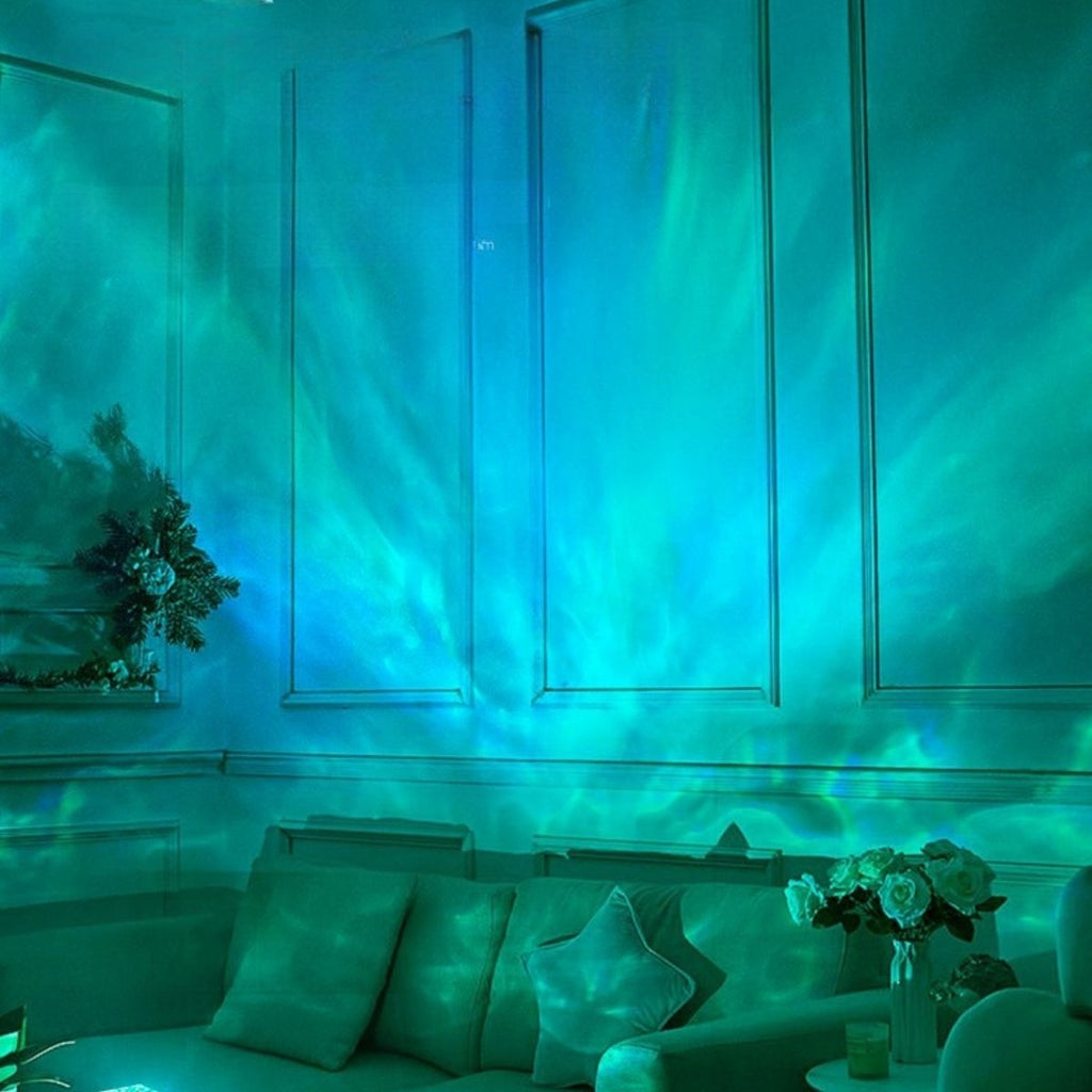 Crie um clima acolhedor e relaxante com essa luminária decorativa que simula ondulações de água. Seu disco interno giratório movimenta a luz de forma suave, criando projeções envolventes nas cores branco, amarelo e azul.